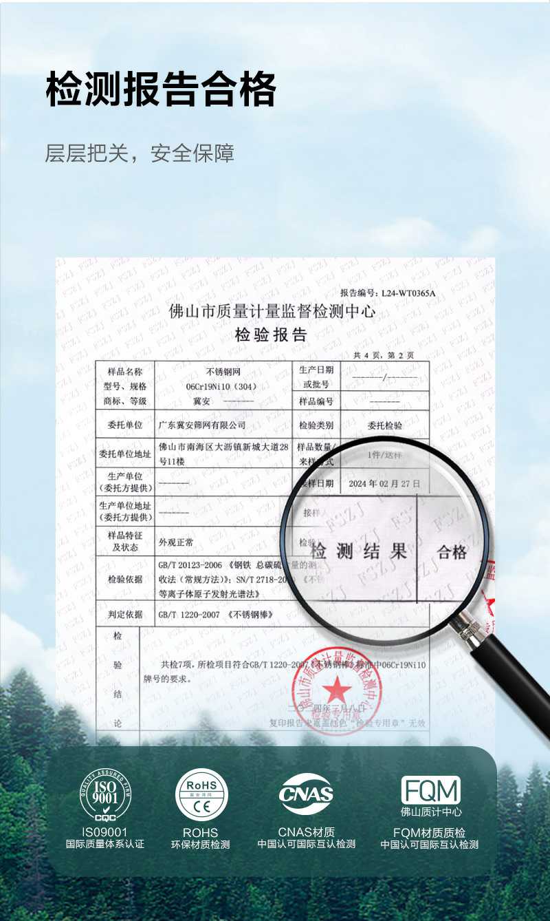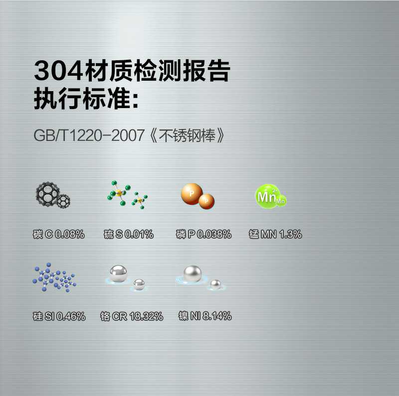產(chǎn)品材質(zhì):國標(biāo)304,通過質(zhì)量技術(shù)監(jiān)督局7項(xiàng)元素鑒定