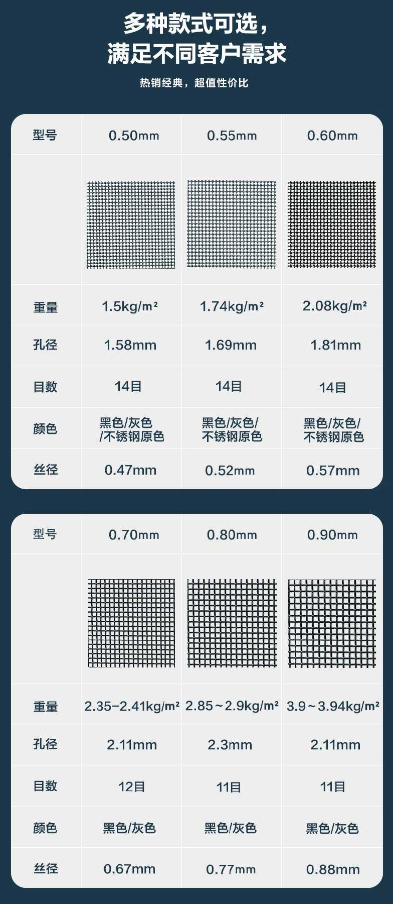 Weft wire diameter 緯線絲徑:0.88mm +0.03/-0.03mm